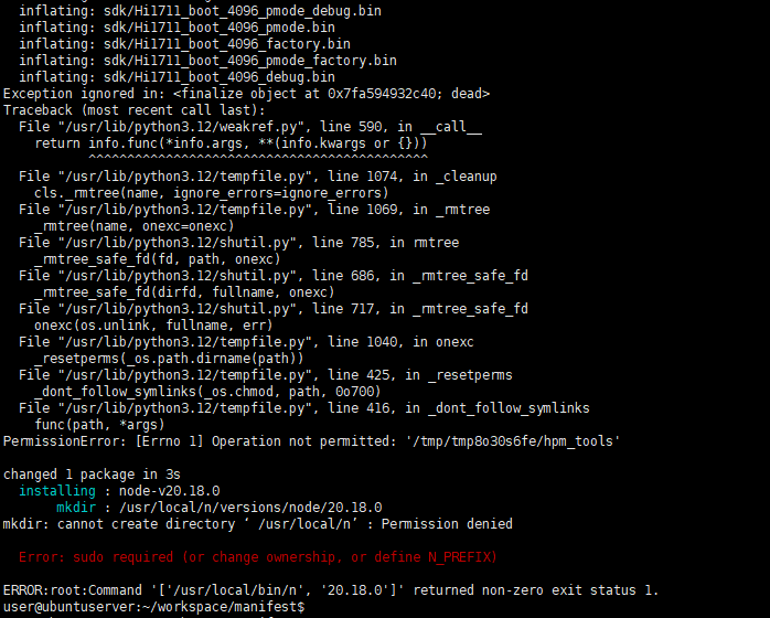 n的权限有问题,单独执行一下n 20.18.0一下