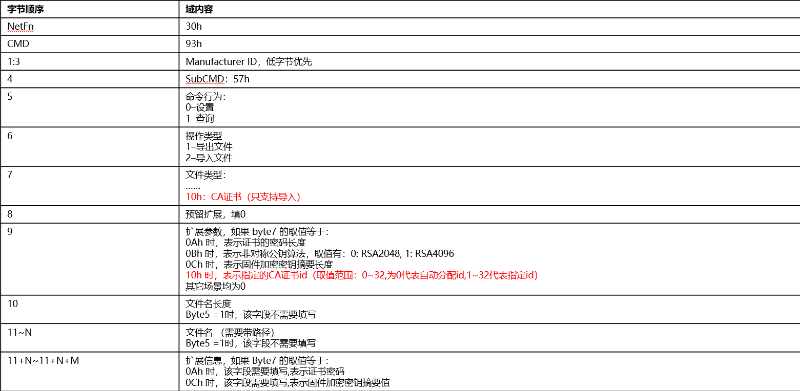 2、ipmi命令File Action系列下新增文件类型参数取值10h (CA证书)