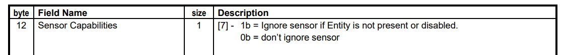 step3 Status的取值来源于传感器关联的Entity,若传感器的Capabilities属性的bit7配置为1,如下图所示,则表示传感器会受到Entity失效影响会被禁止。