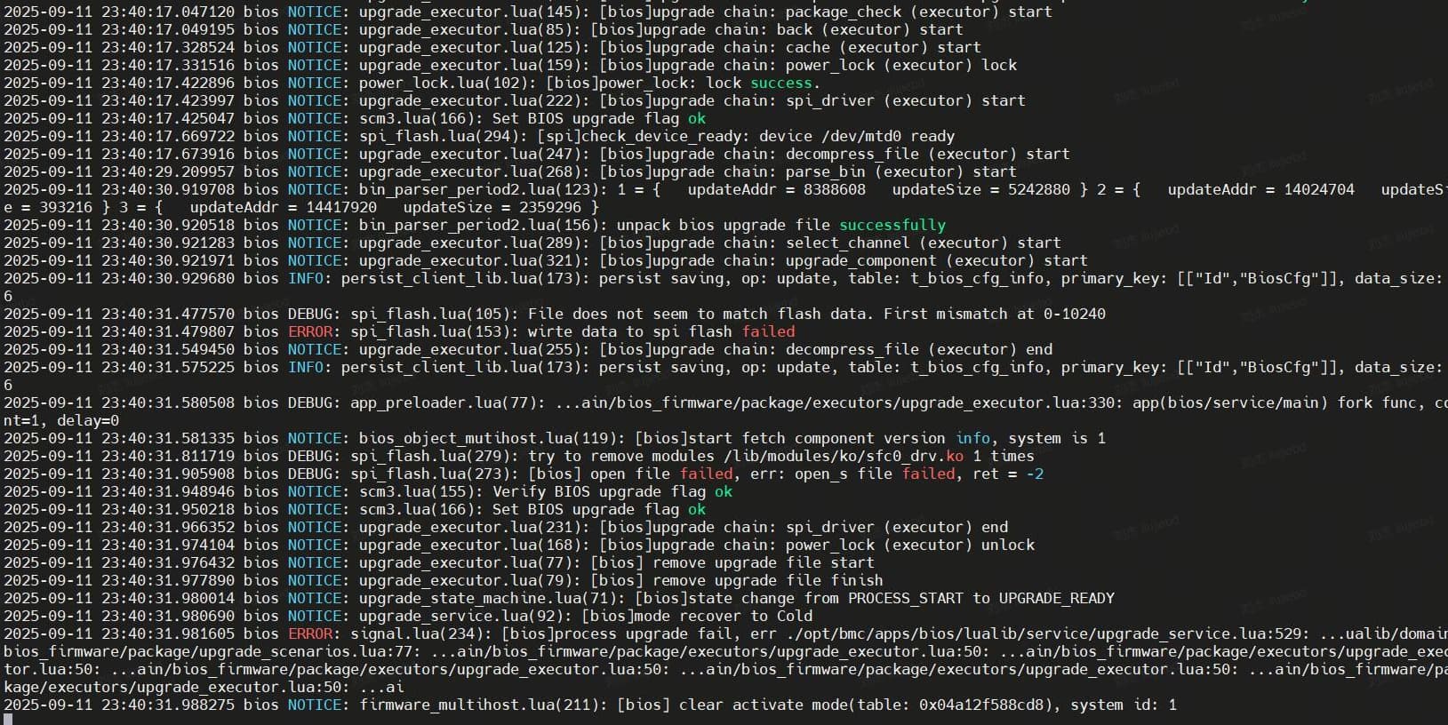 2、BMC升级BIOS,第一步是做总线切换,其次是驱动加载;可以先手动做一下总线切换,然后手动加载驱动,查看是否有/dev/mtd0设备,也就是将代码里的升级流程变成手动执行: