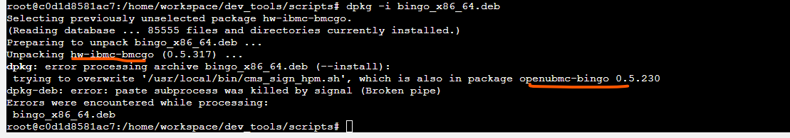 补一份截图,hw-ibmc-bmcgo 和openubmc-bingo两个包只能存在一个,否则就报错