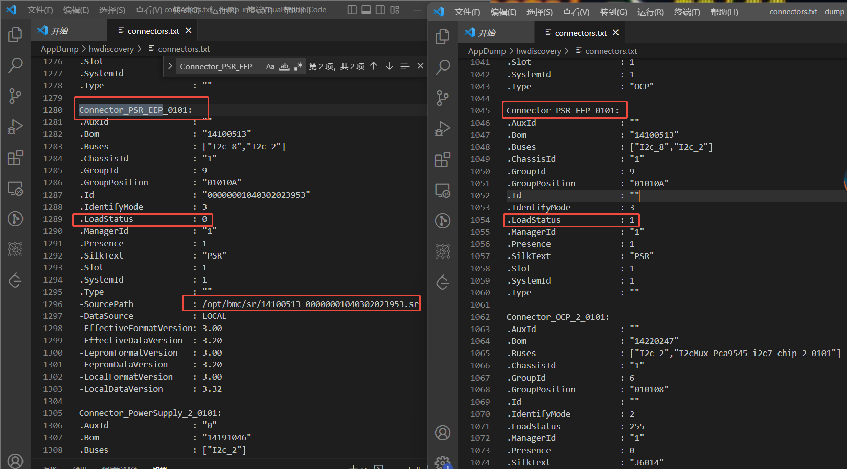经过日志调试发现在接入此硬件模块后导致I2C8下的connector中的loadstatus 值发生变化