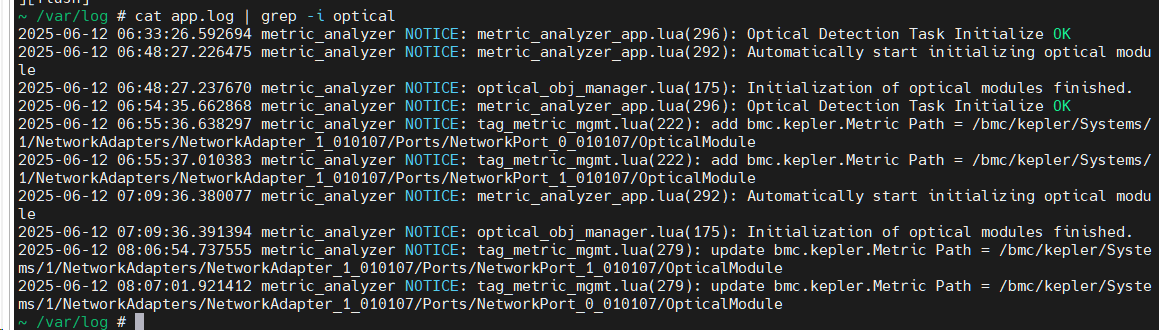 个人推测是iBMA带内获取后发送给BMC,但在network_adapter未找到相关日志,只在一个叫metric_analyzer的组件发现了光模块上树的打印
