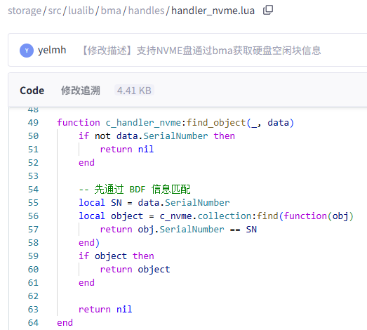或许你可以在这个匹配函数中新增一段通过BDF来匹配NVME对象的逻辑,现有的社区代码中应该是通过SN来进行匹配的,而消费级M.2 NVMe是无法通过带外方式获取SN的,因此在你的环境上这个匹配函数不会返回有效对象