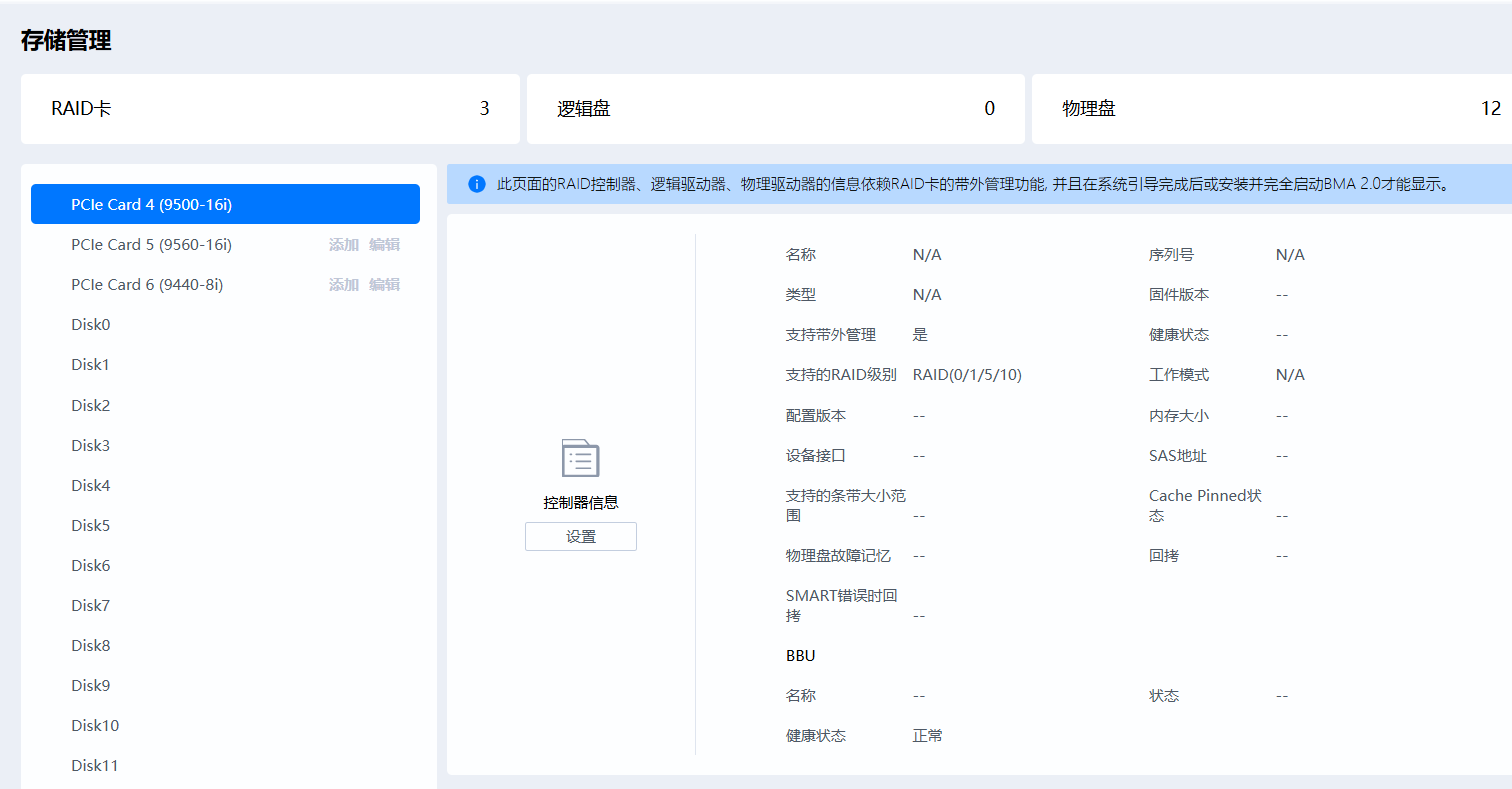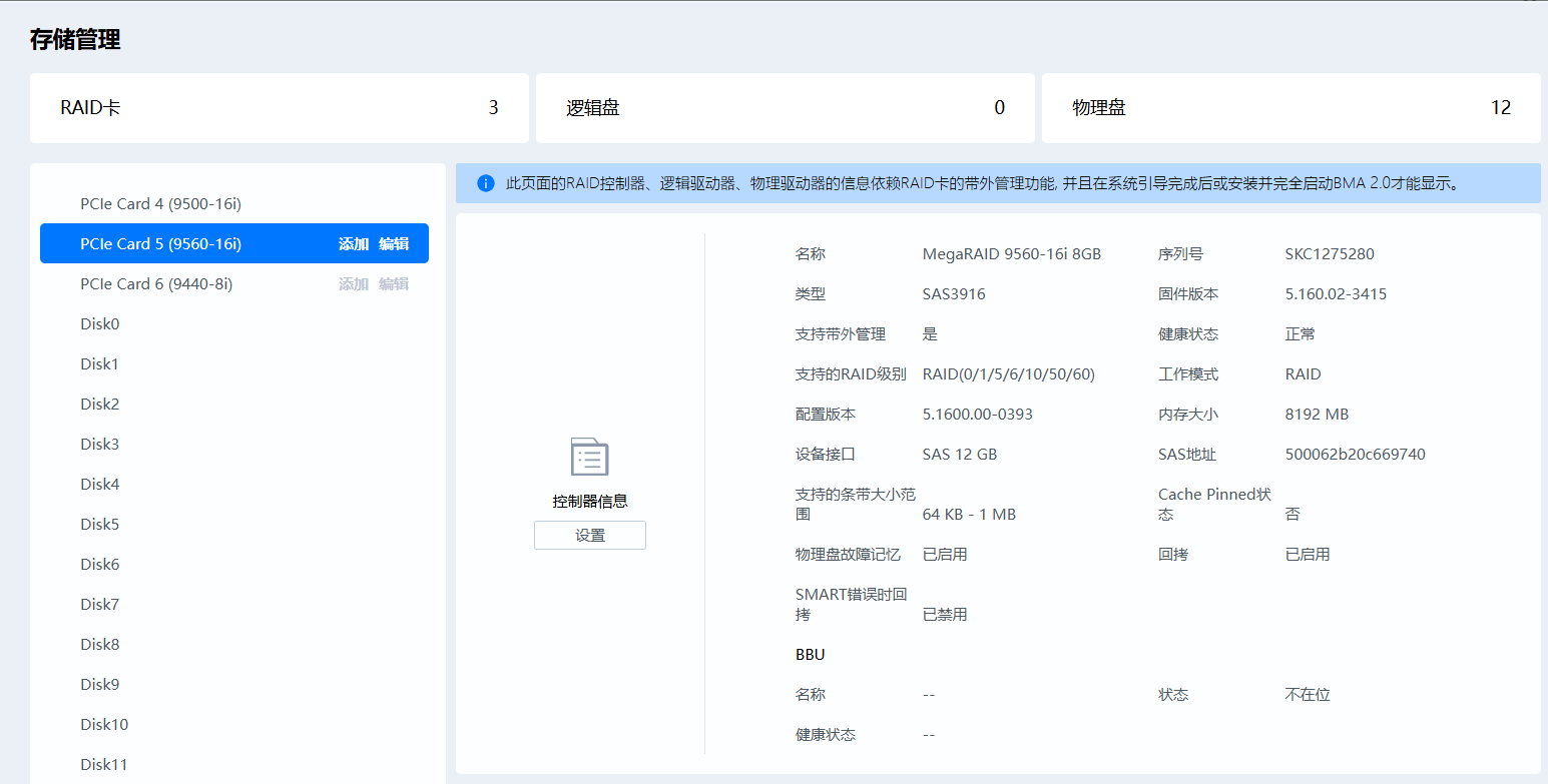 2.9500-16i raid卡拿到V2的天翼云环境是可以正常显示的,但是这张卡信息获取非常慢,每次刷新一个数据,所有数据显示完整大约需要10多分钟。