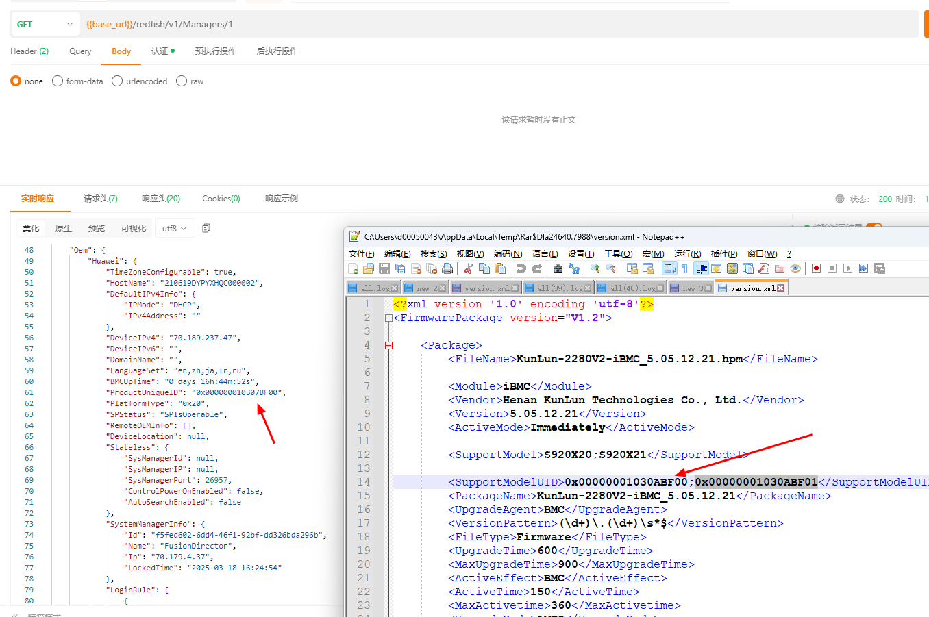 坂田官网发布软件包S920X20-S920X21-iBMC_5.05.12.15.zip内的Version.xml,仅包含0x00000001030ABF00;0x00000001030ABF01这两个UID