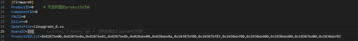 该字段是支持的机型,主干包是支持全机型的,所以配置的比较全。 S920X20-S920X21-iBMC_5.05.12.15.zip只支持两个机型,所以这里只配置了两个UID。
