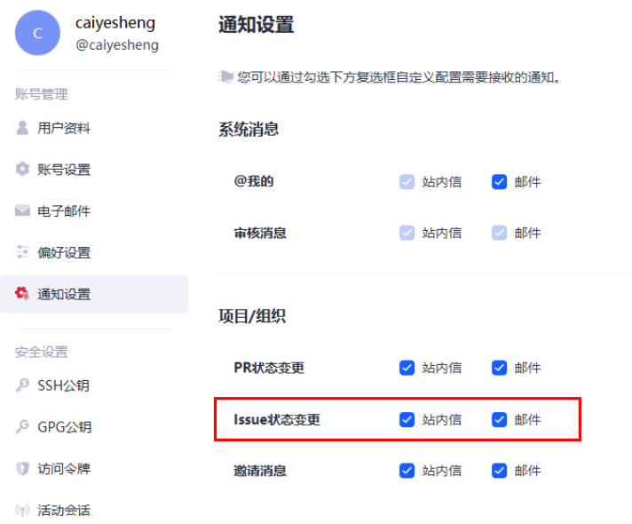 - 关注issue状态变更,确保有新增issue可以收到邮件通知