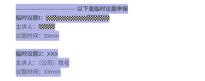 - 议题: 申报的议题的主要信息,一句话说清楚当前要评审的主要内容