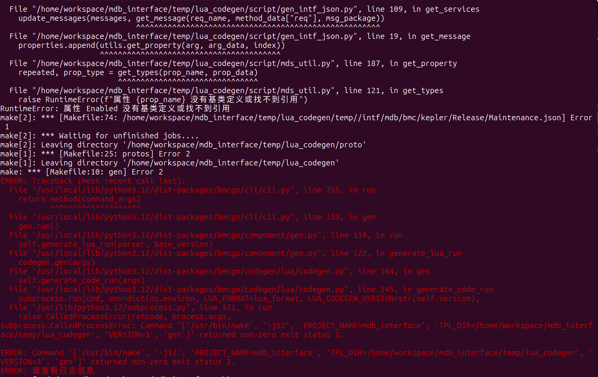 使用mdb_interface组件bingo gen -r openubmc_dev时报错 mdb_interface组件版本:1.90.11 bingo版本:0.5.317 错误截图: