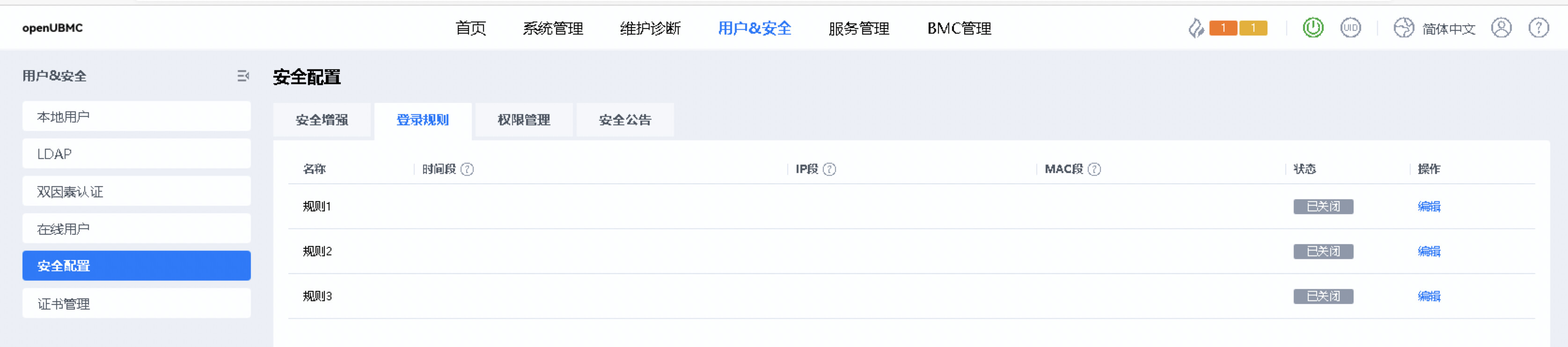 有客户想要BMC证明,支持白名单和黑名单功能,有效限制风险访问。