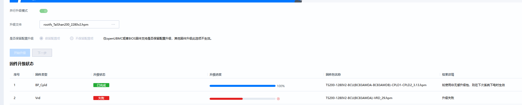 - 当前固件升级的页面展示情况如下: