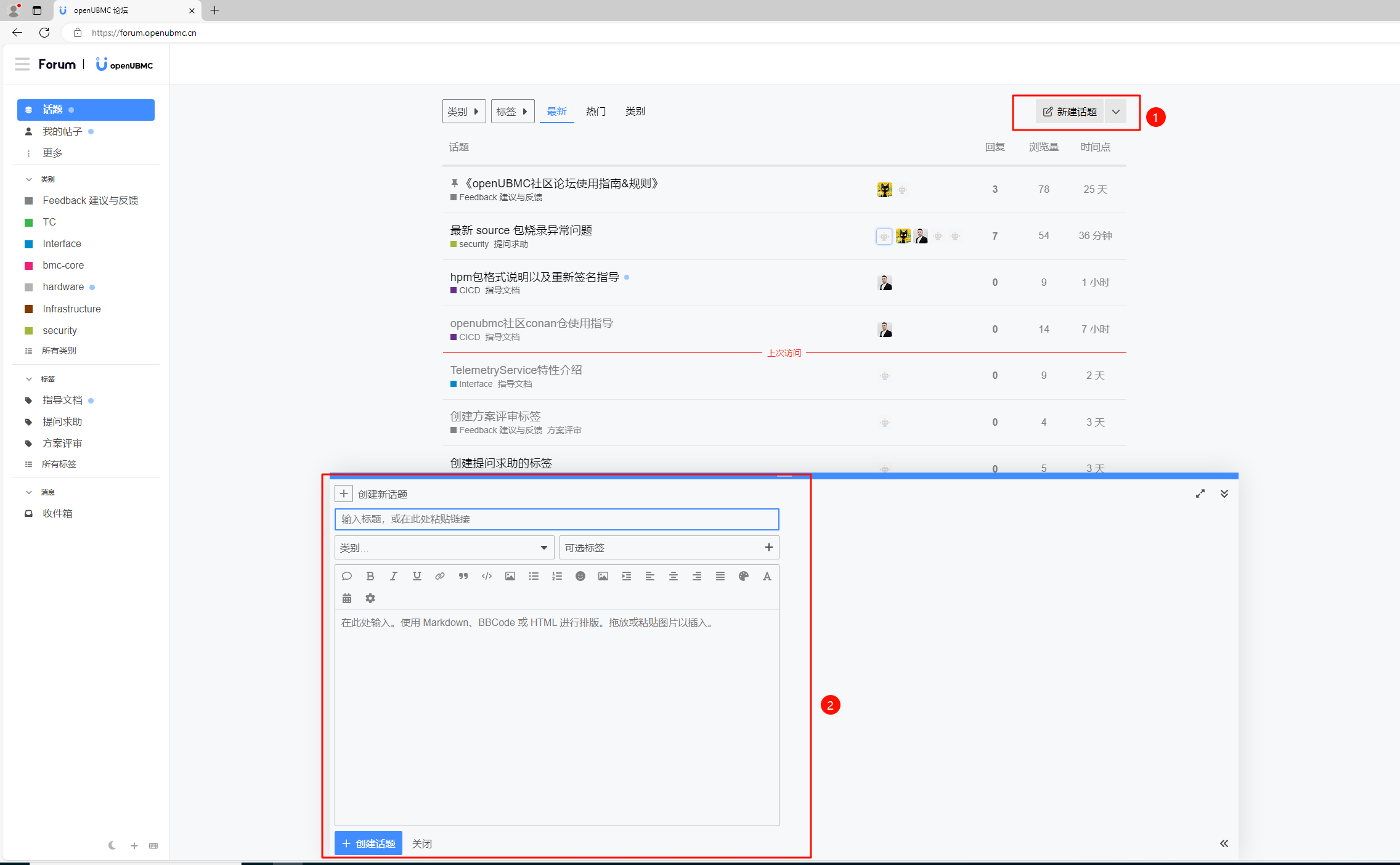 ① 可以发表在社区论坛,sig-docs组会定期审视社区论坛中的帖子,浏览量高、热度高和质量优异等的帖子将会上线openUBMC社区博客