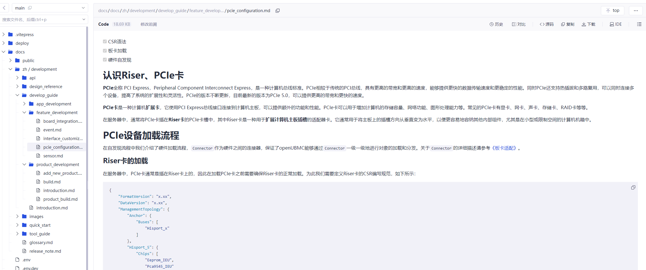 以在开发者指南/开发指南/特性开发添加一篇命名为pcie配置的文档为例