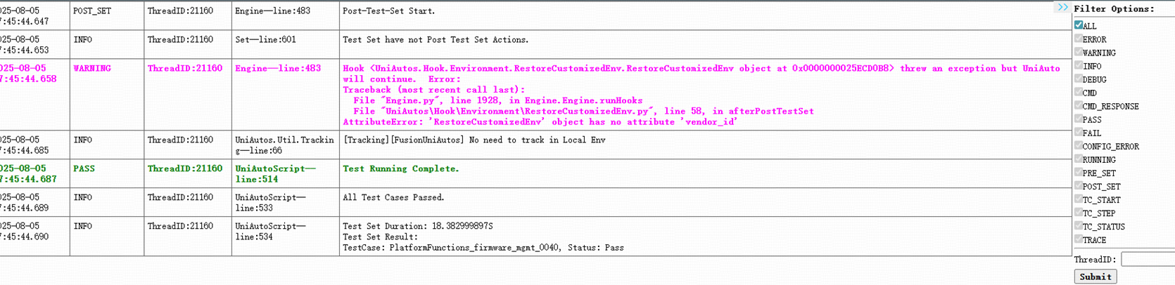 检查日志报告发现第二条用例执行报错“vendor_id"错误