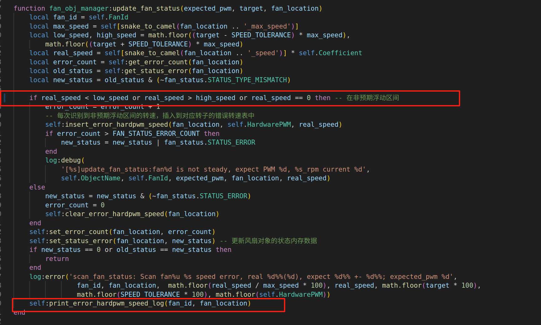 基于风扇板无法提供在位信号。风扇告警逻辑适配,逻辑为:风扇配置为默认在位,转速2s检测一次,5次转速偏差超过25%或者转速为0(thermal_mgmt代码判断告警处新增转速为0条件)。