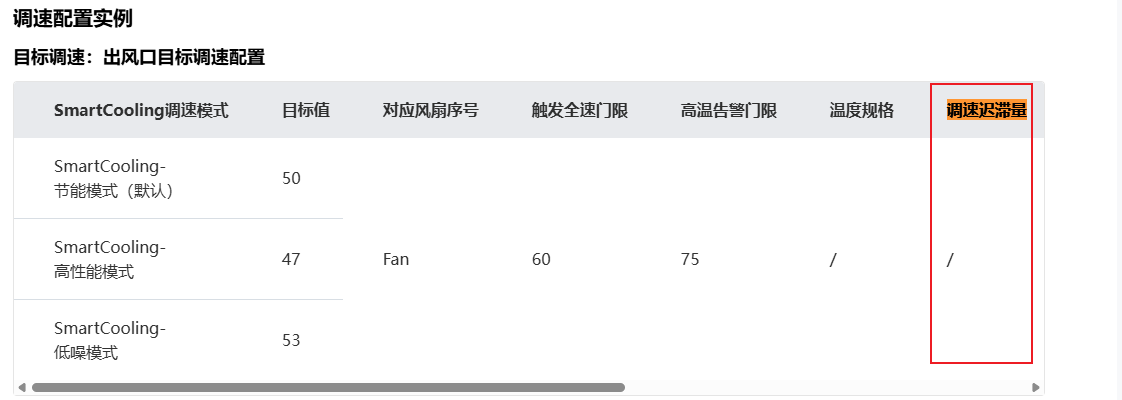 最近在调试网卡的散热调速时,想尝试修改下网卡温度的调速迟滞量,社区文档里的示例的调速迟滞量为空,请问是否支持设置