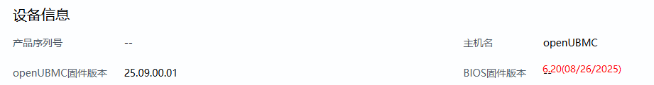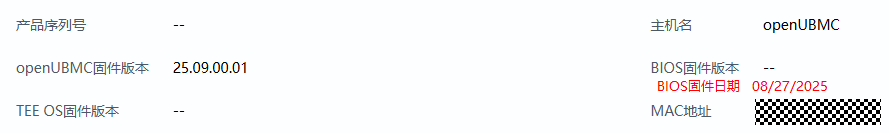 1、web界面新增BIOS版本发布日期,格式为MM/DD/YYYY(与SMBIOS协议上报格式一致)