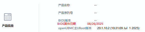 通过SMBIOS上报“Firmware Release Date”字段,呈现到bmc.kepler.UpdateService.FirmwareInfo的ReleaseDate属性上,在webrest接口进行拼接