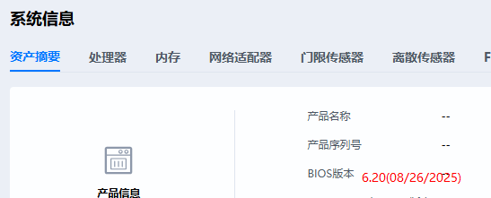 | Product/BIOSReleaseDate | BIOS固件版本发布日期,格式为MM/DD/YYYY。默认值为空字符串 | string |