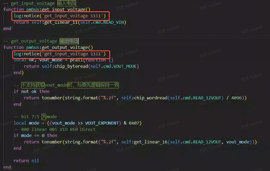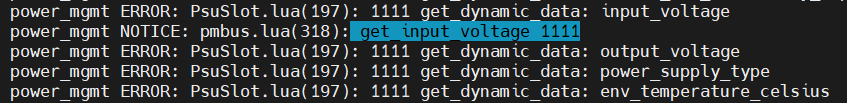 确认PSU输出电压的命令字是0x8B,PsuSlot.lua和pmbus.lua加载正常,其他电源信息(比如输入电压)可正常获取,但输出电压一直为0,但是通过bus.IO read 0x8B可以读到输出电压。