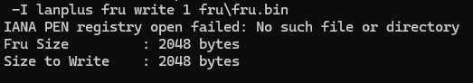 ①写入的fru文件大小为2048Byte时,命令执行返回:
