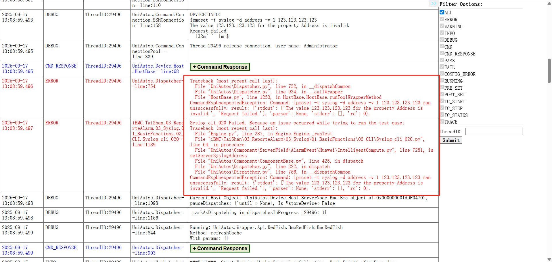 OpenUBMC->融合运维->CLI配置IPV4地址测试,测试结果Fail