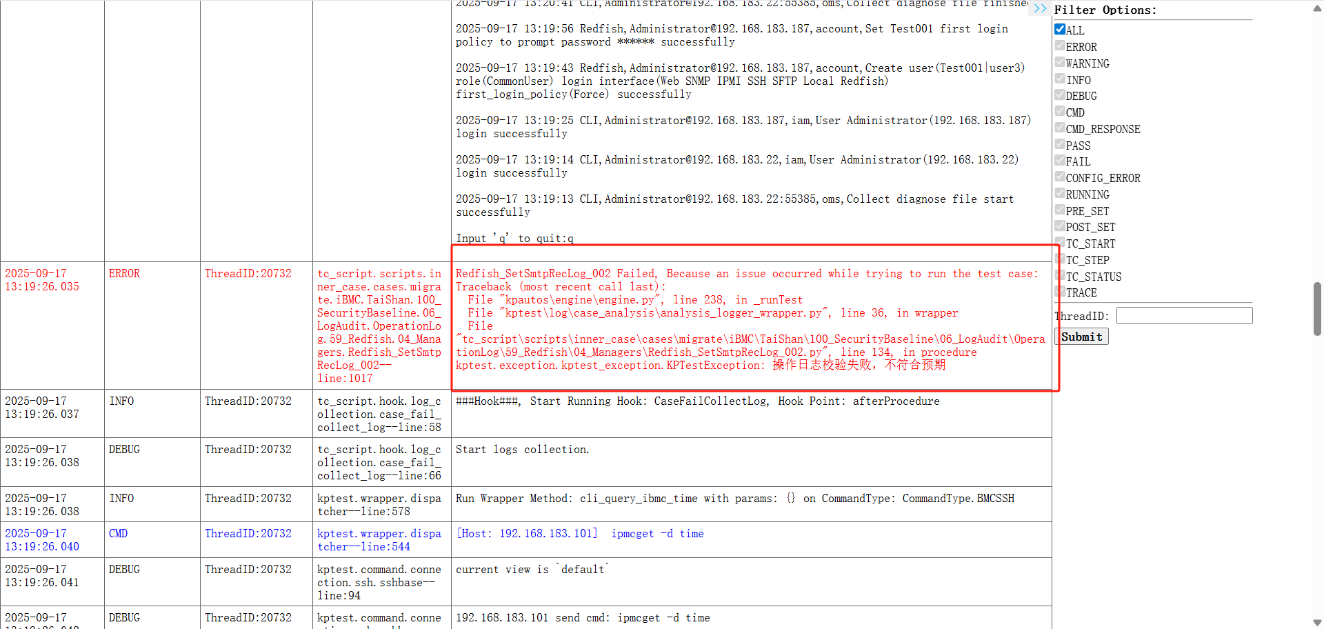 一、测试环境 硬件:S920X20 BMC Version: 25.06.00 二、问题描述 OpenUBMC->融合运维->设置接收告警的邮件地址成功记录操作日志测试,测试结果Fail