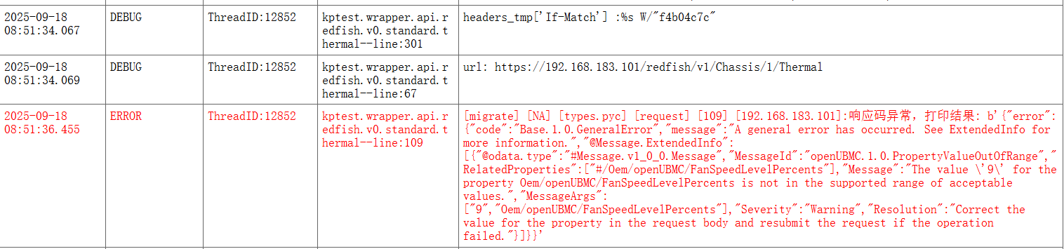 一、测试环境 硬件:S920X20 BMC Version: 22.06.00 二、问题描述 OpenUBMC->能效管理->设置风扇转速异常边界值测试,测试结果Fail