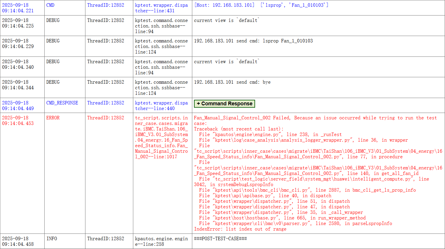 【iTestSmart】风扇手动调速,查询风扇速率传感器显示,测试结果Fail。