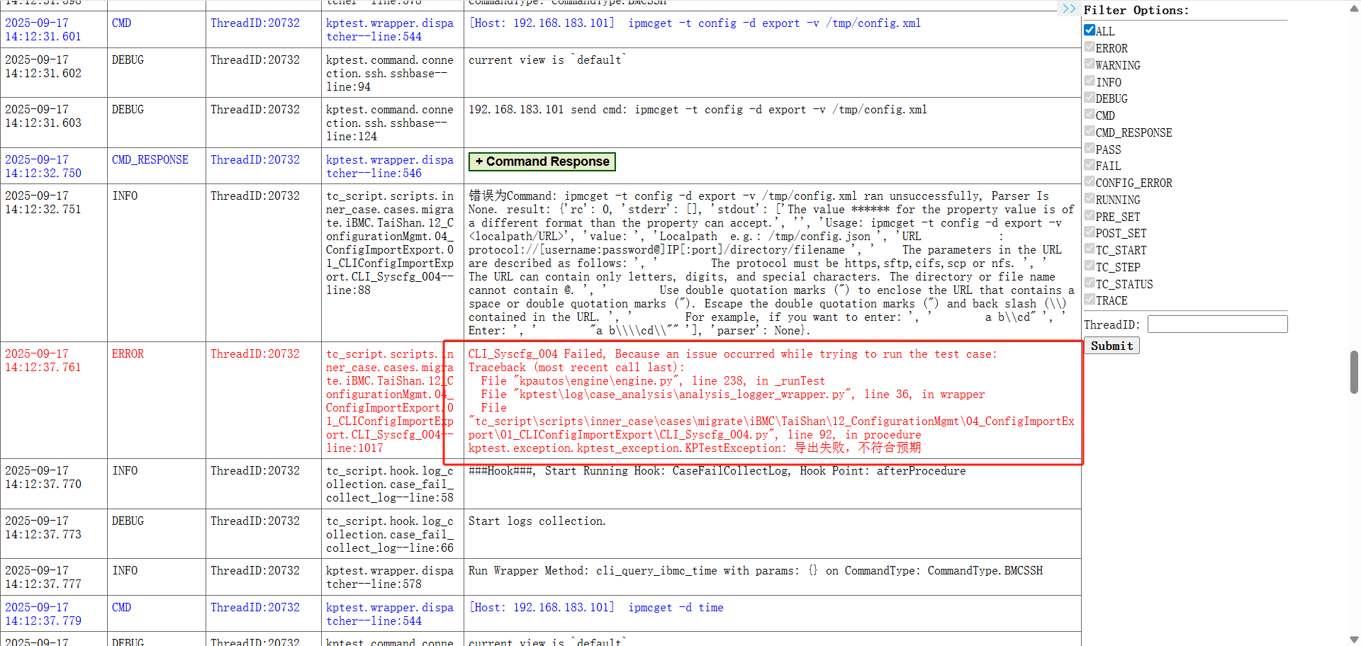 OpenUBMC->融合运维->CLI导出配置正确性测试,测试结果Fail