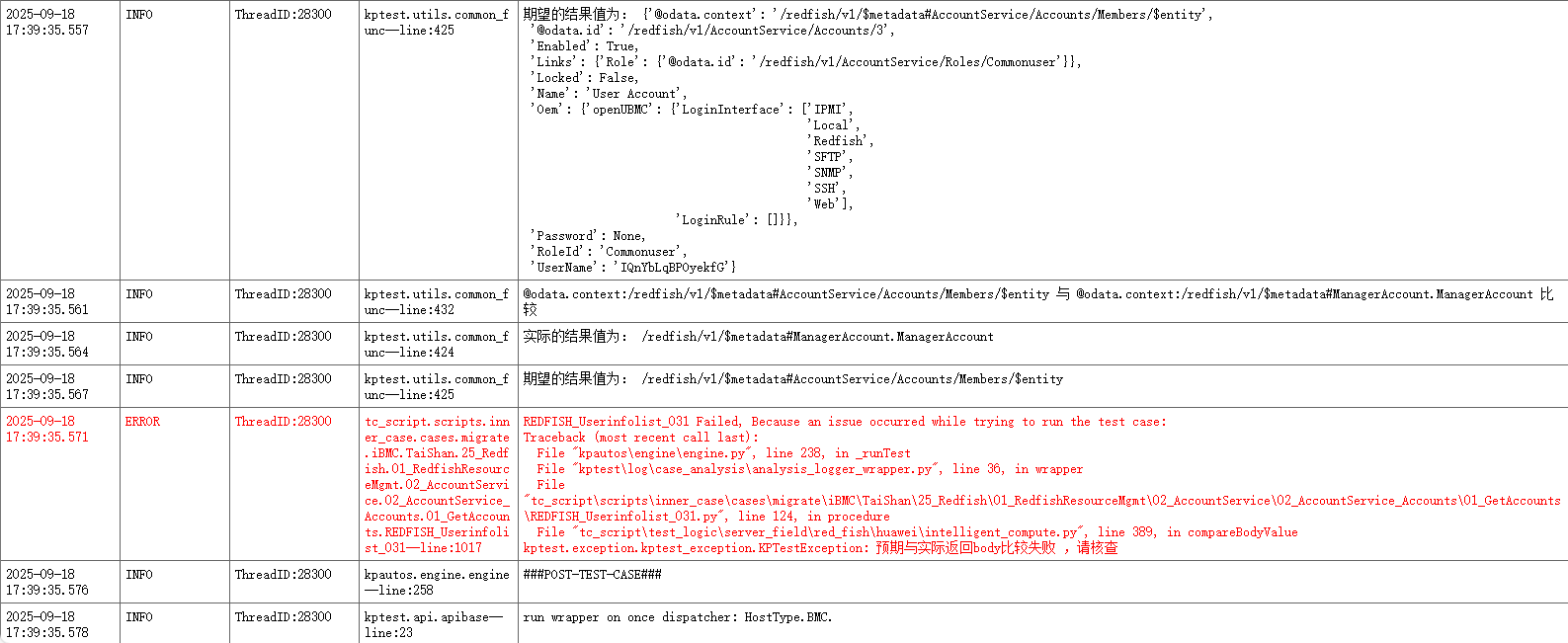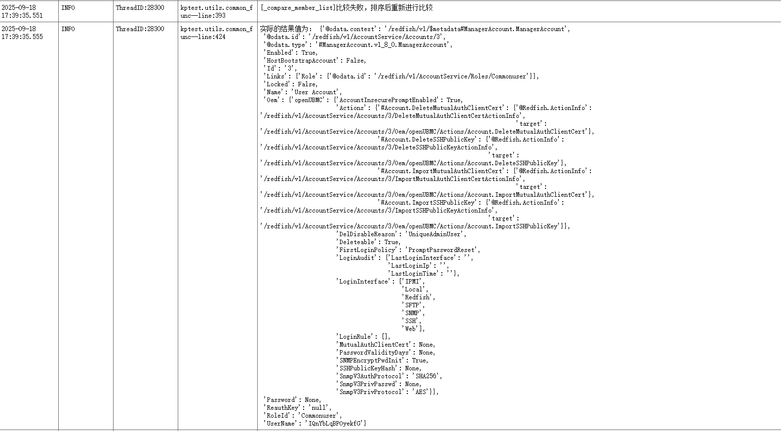 OpenUBMC->能效管理->普通用户,查询自身信息测试,测试结果Fail