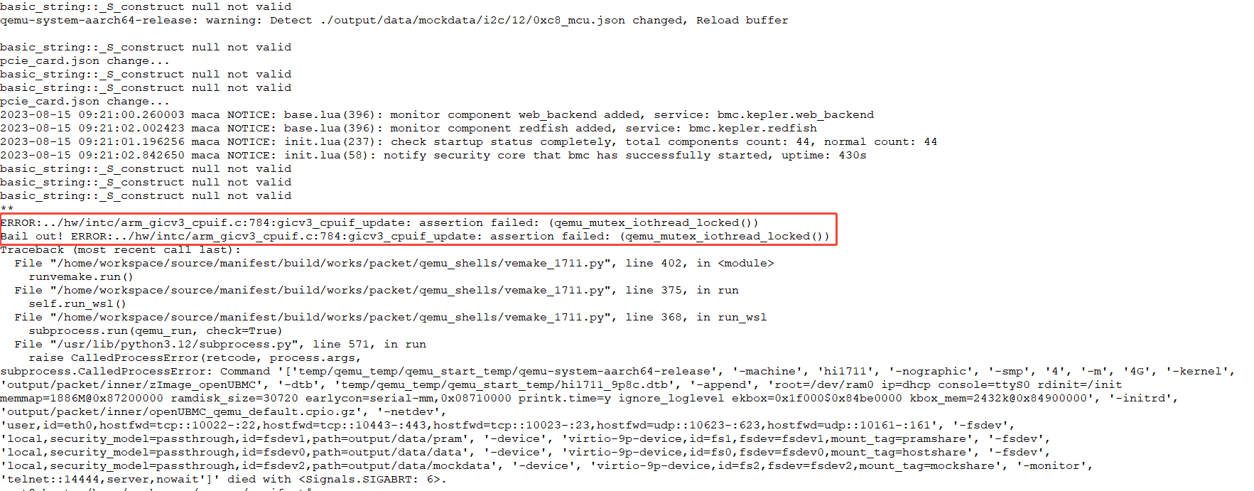 您好!很抱歉我这边暂时没能复现您的问题,从您的回显信息看是/hw/infc/arm_drcv3_cpuif.c断言失败导致的问题,猜测很有可能是您本地缓存的qemu二进制文件和现在不匹配问题,您可以进行如下流程进行恢复: