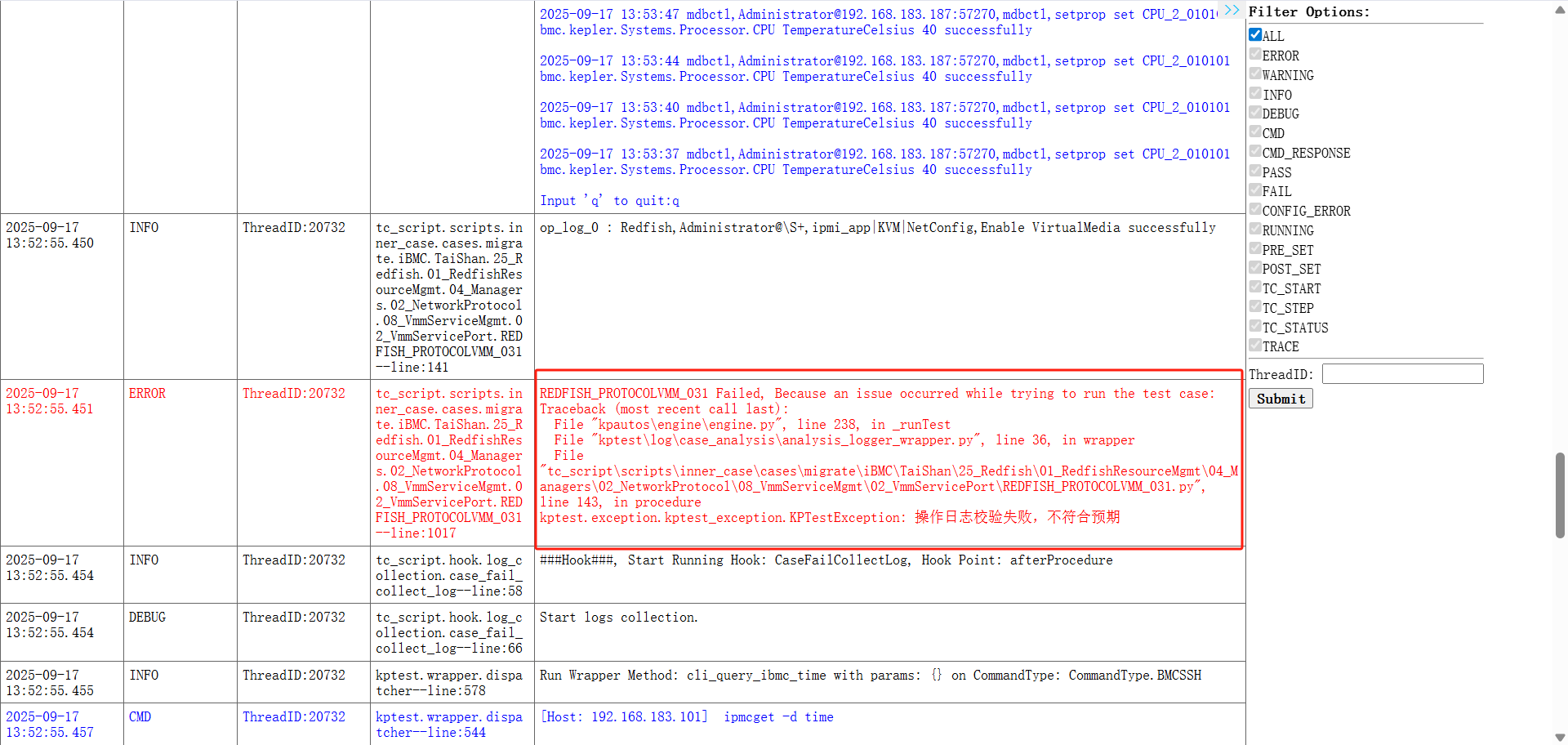 一、测试环境 硬件:S920X20 BMC Version: 25.06.00 二、问题描述 OpenUBMC->融合运维->设置VirtualMedia服务状态使能成功记录操作日志测试,测试结果Fail