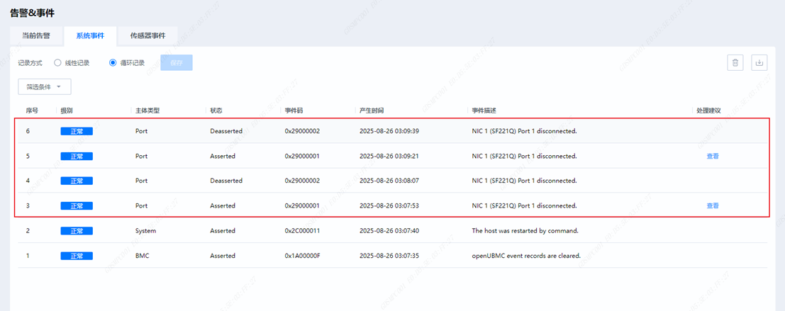 服务器上电时,链接网线的NIC网口会出现多余的插拔事件
