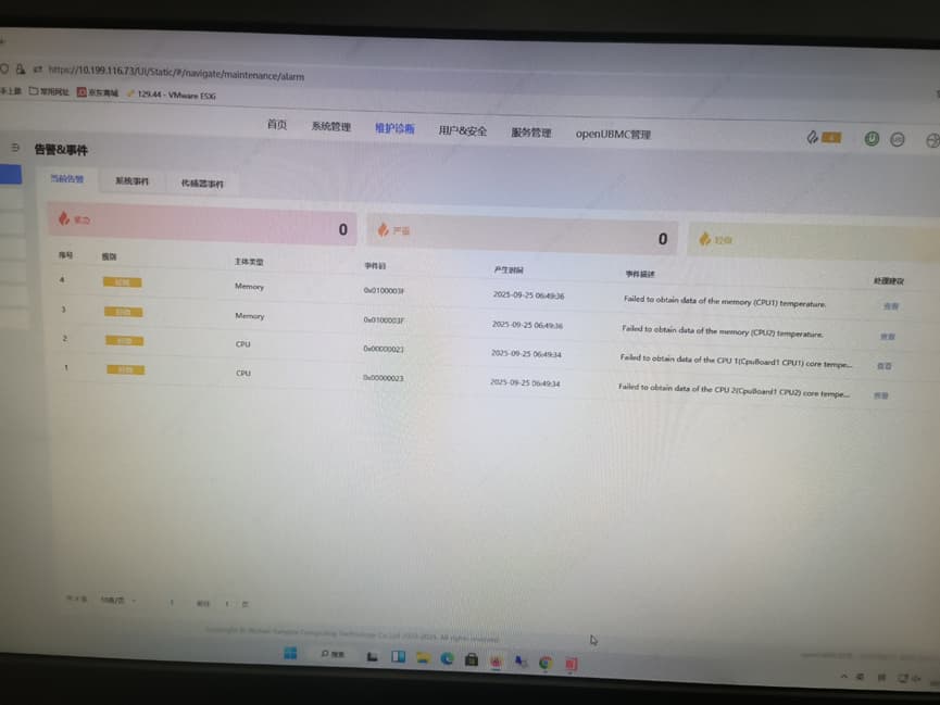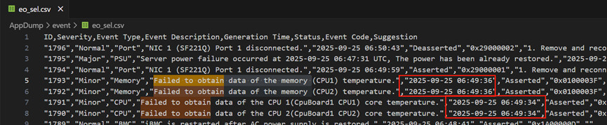 “Minor”,“Memory”,"Failed to obtain data of the memory (CPU1) temperature.