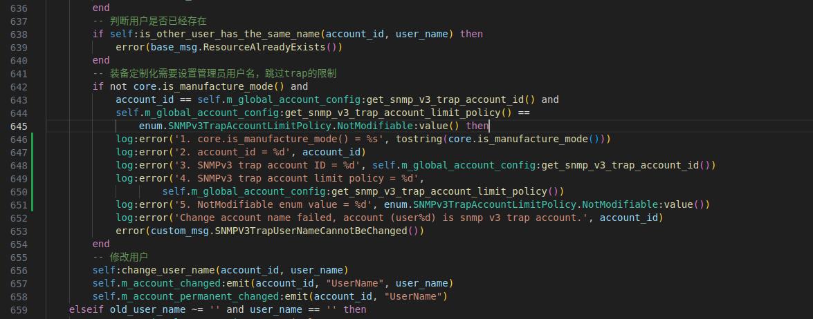问题不在于装备模式。而是如果用户为TrapV3用户,是不允许修改用户名。 此处的装备模式跳过检查,是因为默认2号用户是TrapV3用户,为了装备阶段可以定制2号用户用户名。