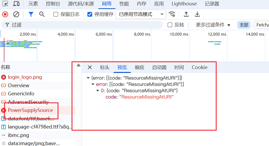 检查浏览器网络信息,发现Rest/System/PowerSupply/PowerSupplySource接口报错