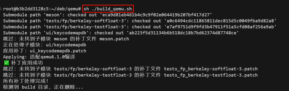 - 终端输入:sh ./build_qemu.sh,等待编译完成