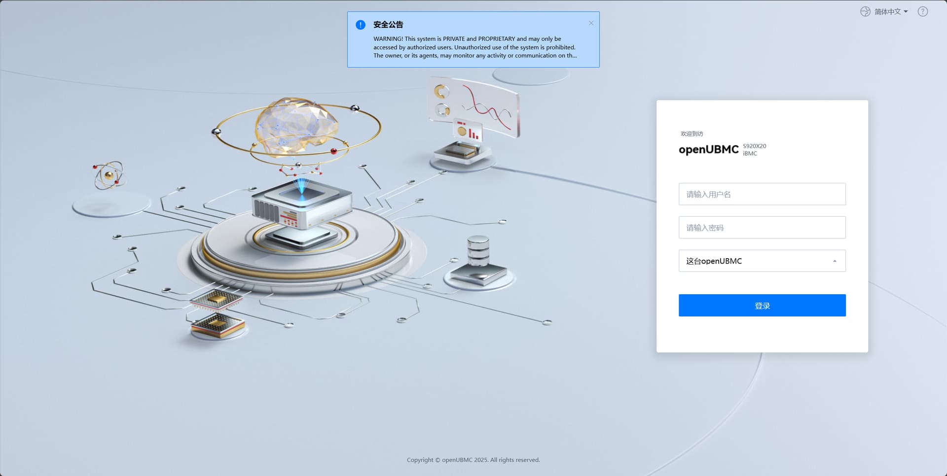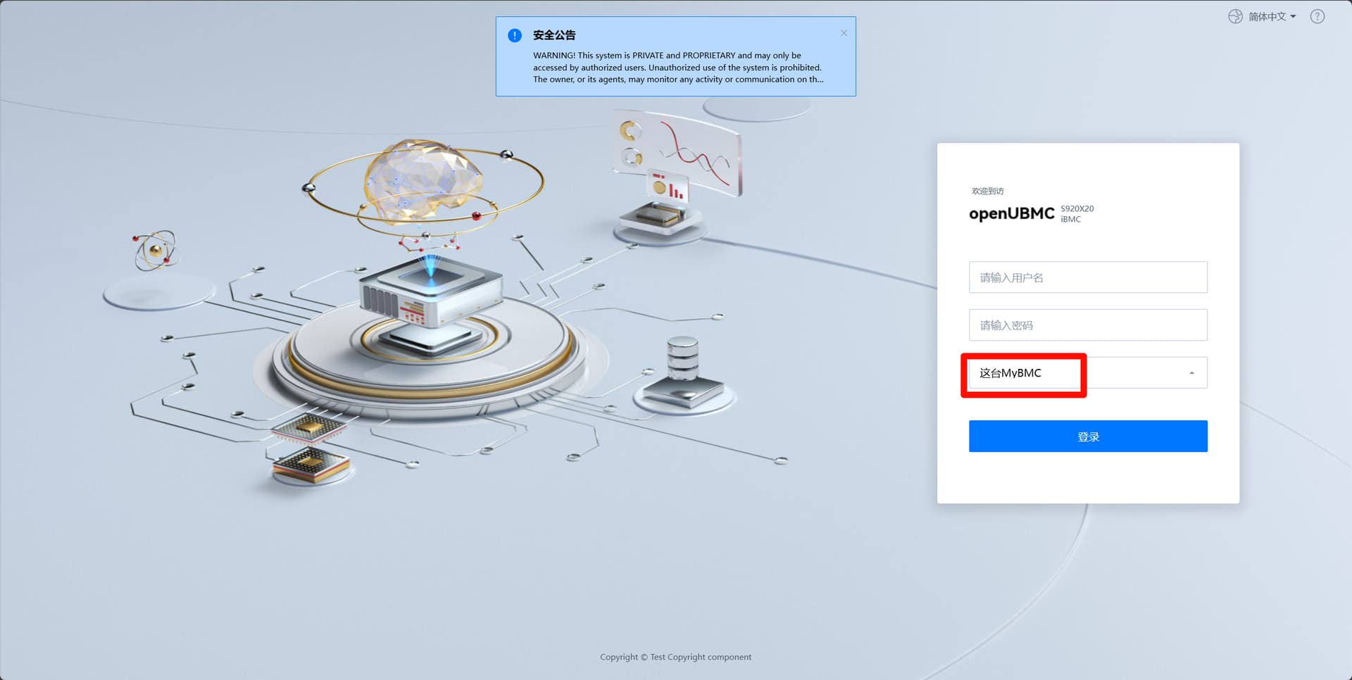 Qemu启动后,点击连接,输入信息后即可建立与Qemu的连接,已经启动Qemu后点击“BMC登陆”即可开启Qemu的BMC页面