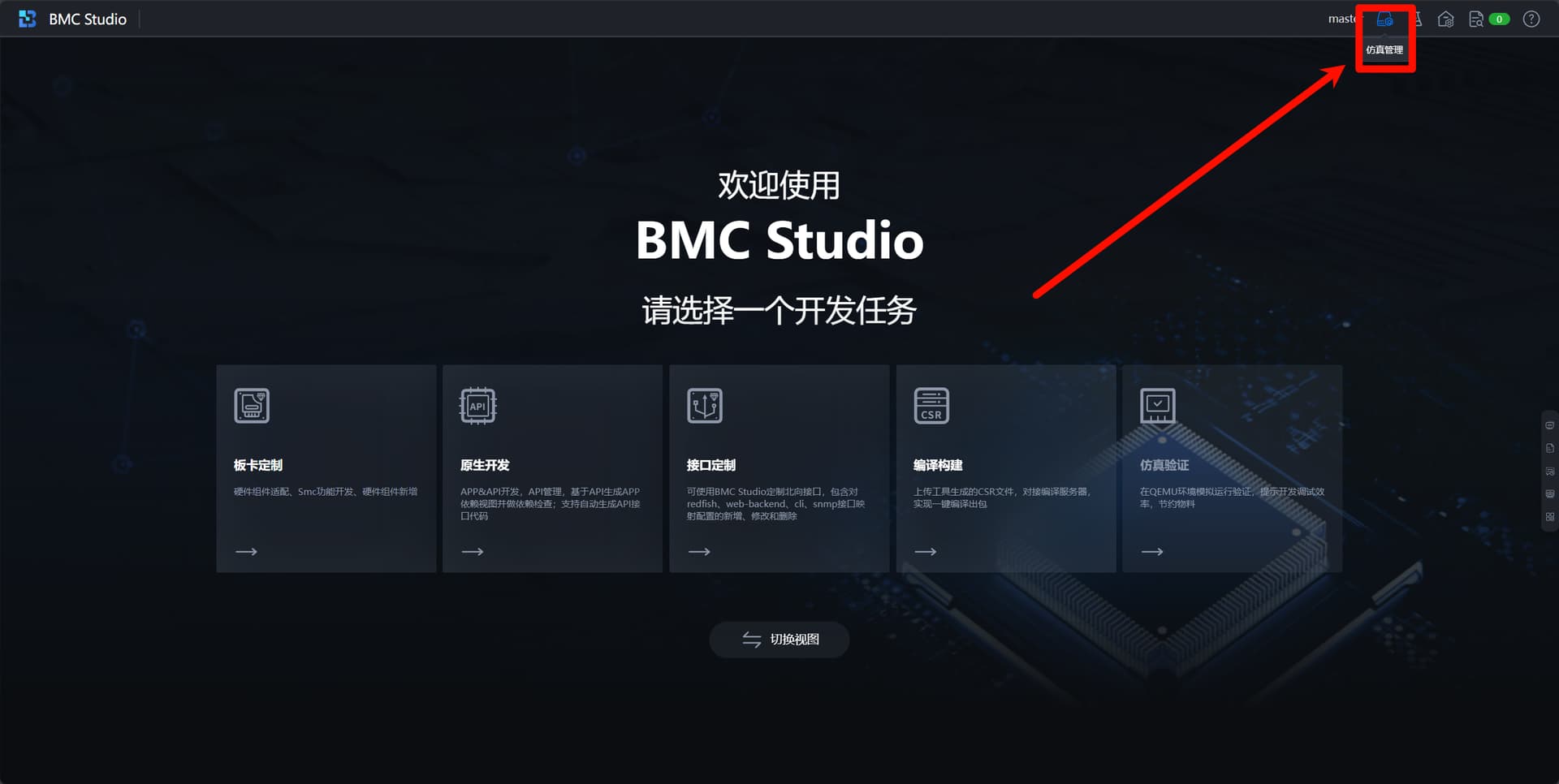 连接到BMC环境后,选择右上角的仿真调试