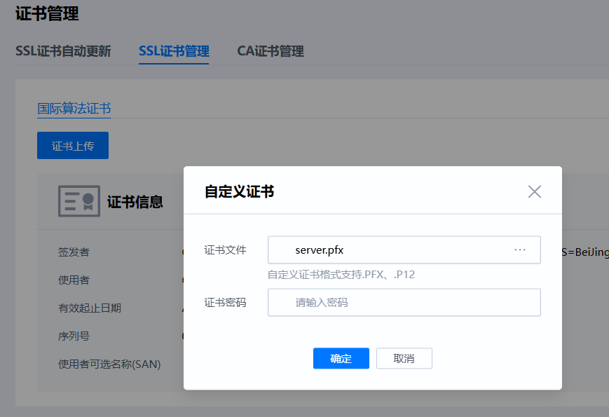 我也有这个问题,同样是同一个ssl证书,web可以导入,wbd升级不能导入。
