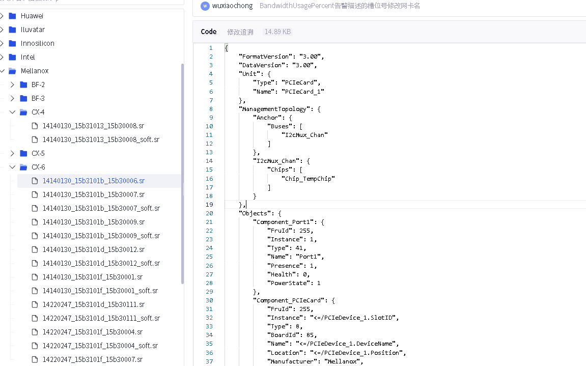 具体你可以搜索"Bom": “14140130” ,你可以在其他sr文件里看到类似这样的,下面这个其实就是你这个网卡sr的上一层了。