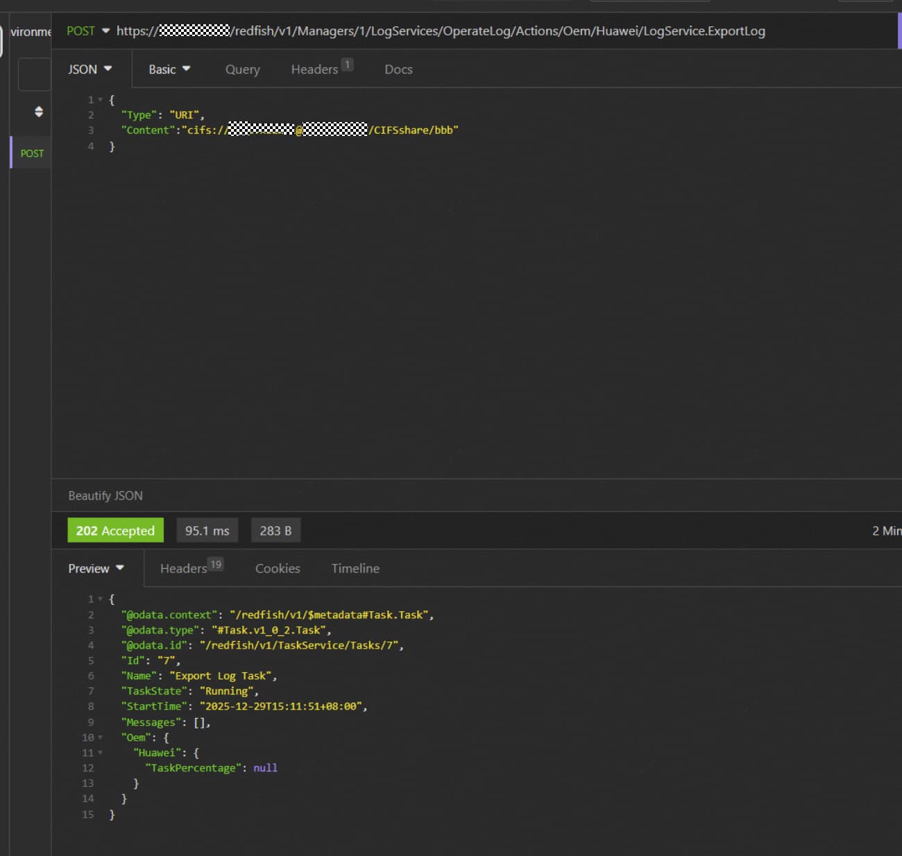 通过redfish接口导出操作日志,文档中说支持SFTP, HTTPS,NFS, CIFS, and SCP这几种协议,我使用cifs验证。