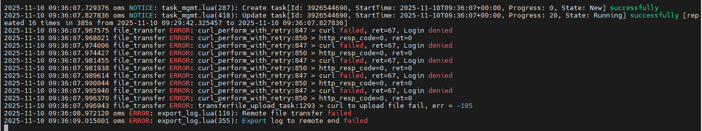 cifs导出日志失败的根本原因是系统使用了“curl”来处理CIFS协议,curl不支持SMB/CIFS协议,建议暂时先别用cifs导出功能改用其他