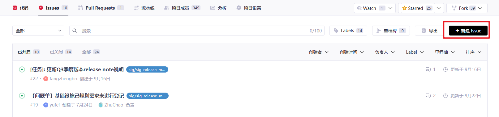 (1) 登陆gitcode对应代码仓,本文已release_management代码仓issue界面为例:release_management