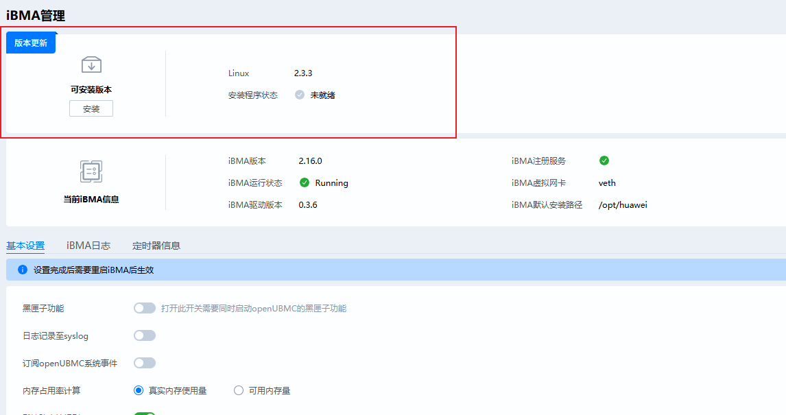 目前iBMA管理界面是这样的,可以正确读取到iBMA软件信息