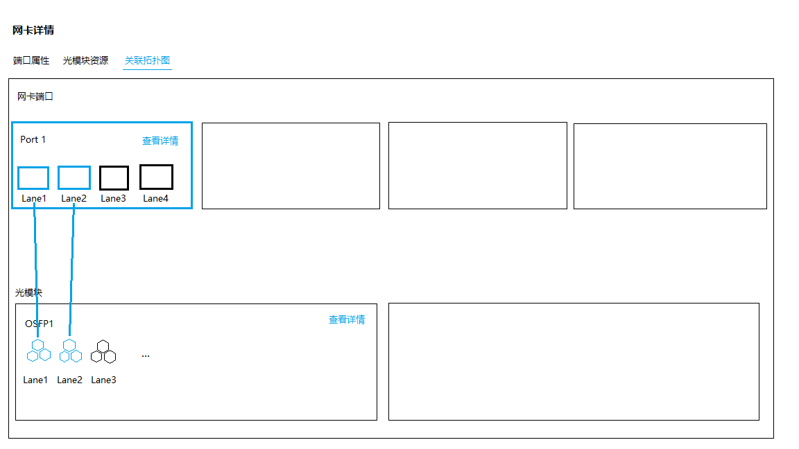 1、同意web新增网口Lane与光模块Lane的关联关系。在网卡详情中新增关联拓扑页签,点击可查看网口和光模块详情