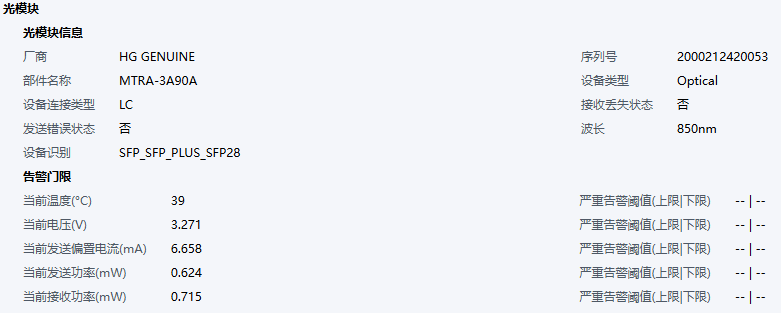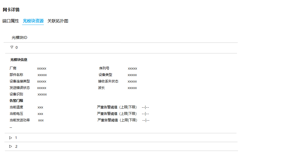 页签点开后,单个光模块的信息保持与原接口一致