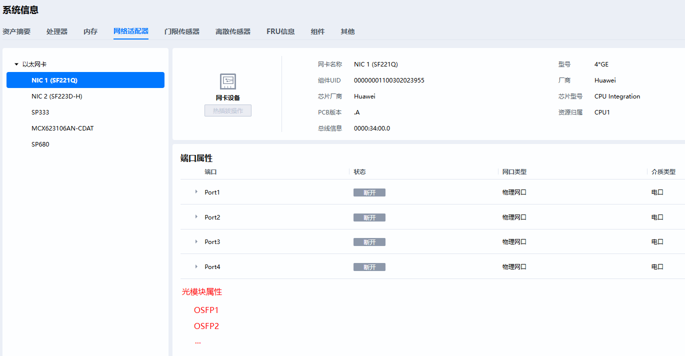 1、对于NPU虚拟网卡,同意web新增光模块界面。其他普通网卡保持现状